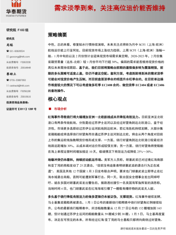 【华泰期货】【20240106】航运月报:需求淡季到来,关注高位运价能否维持-18页