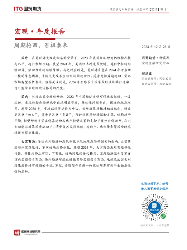 【国贸期货】【20231228】宏观·年度报告:周期轮回,否极泰来-25页