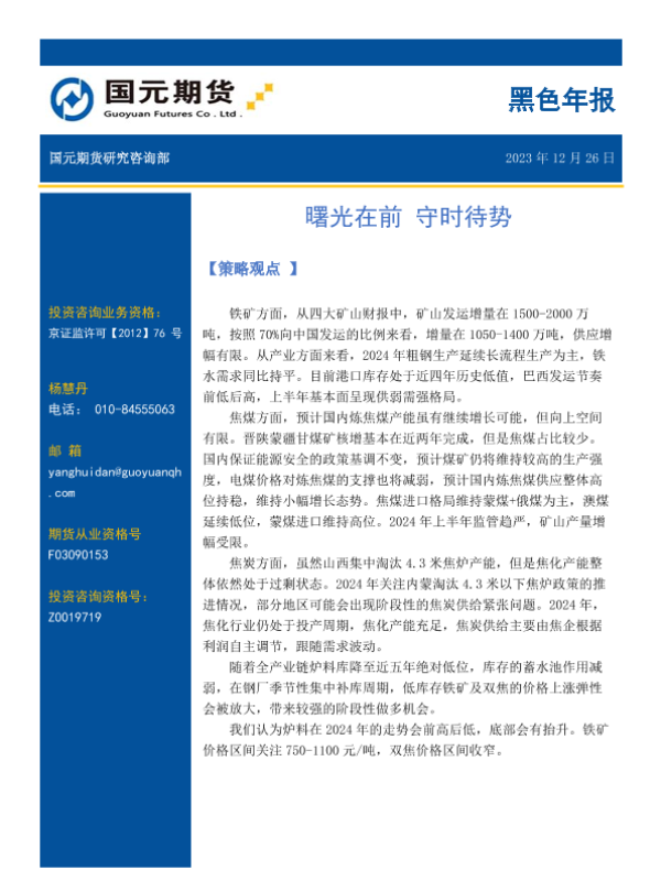 【国元期货】【20231226】黑色年报:曙光在前 守时待势-19页