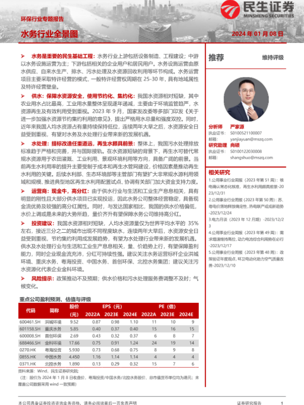 【民生证券】【20240108】环保行业专题报告:水务行业全景图-33页