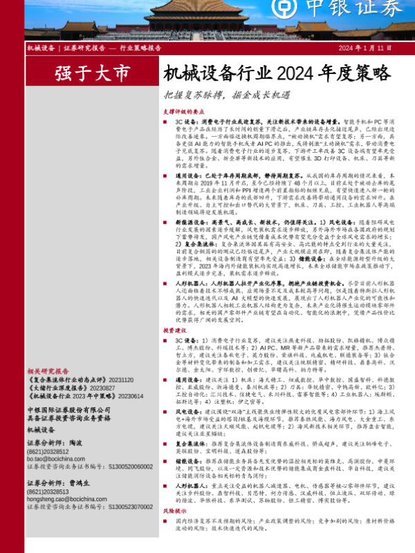 【中银证券】【20240111】机械设备行业2024年度策略:把握复苏脉搏,掘金成长机遇-38页