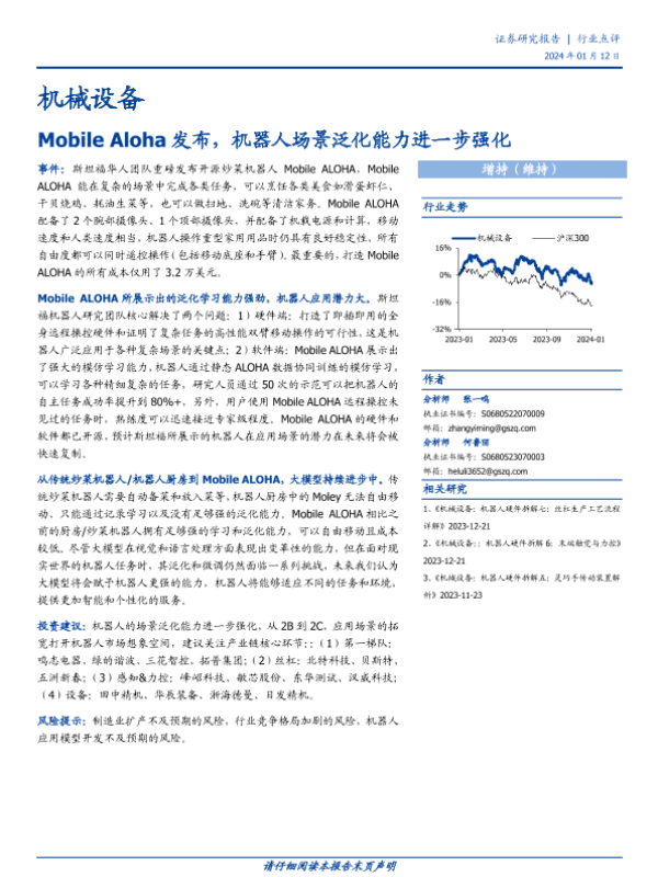 【国盛证券】【20240112】机械设备行业点评:Mobile Aloha发布,机器人场景泛化能力进一步强化-13页