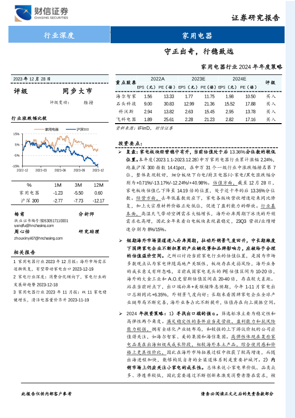 【财信证券】【20231228】家用电器行业2024年年度策略:守正出奇,行稳致远-27页