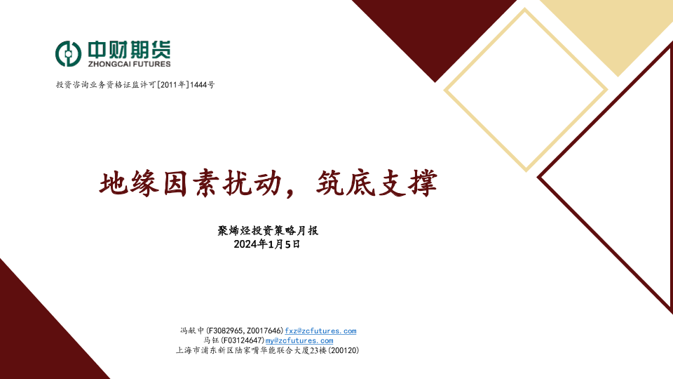 【中财期货】【20240105】聚烯烃投资策略月报:地缘因素扰动,筑底支撑-31页