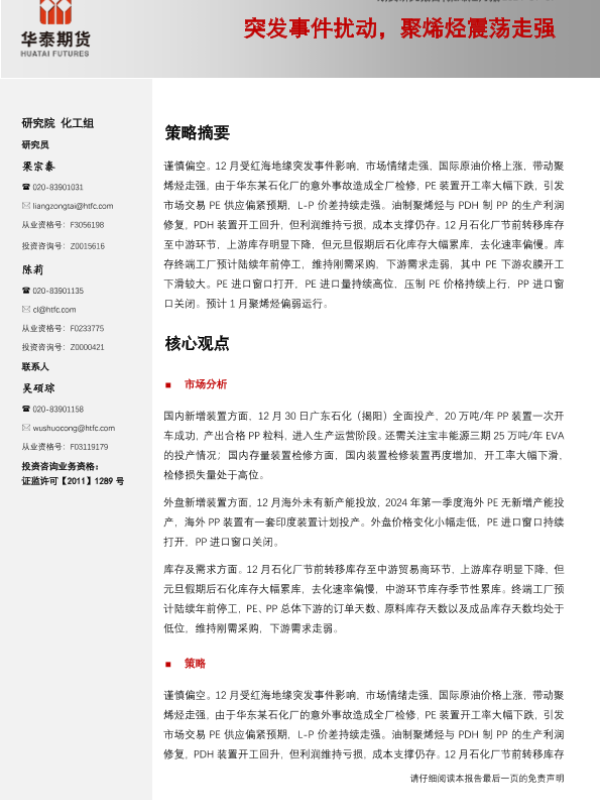 【华泰期货】【20240108】聚烯烃月报:突发事件扰动,聚烯烃震荡走强-27页