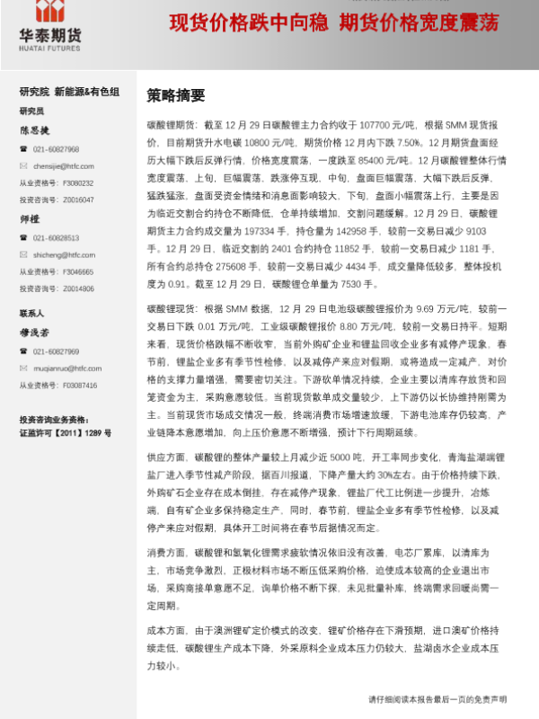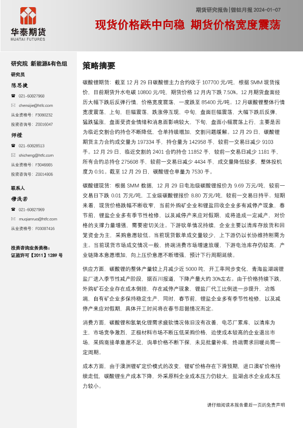 【华泰期货】【20240107】锂钴月报:现货价格跌中向稳 期货价格宽度震荡-25页