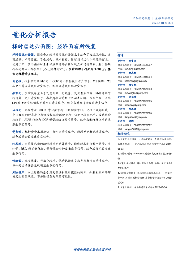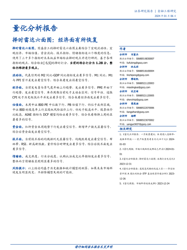 【国盛证券】【20240106】量化分析报告:择时雷达六面图:经济面有所恢复-23页