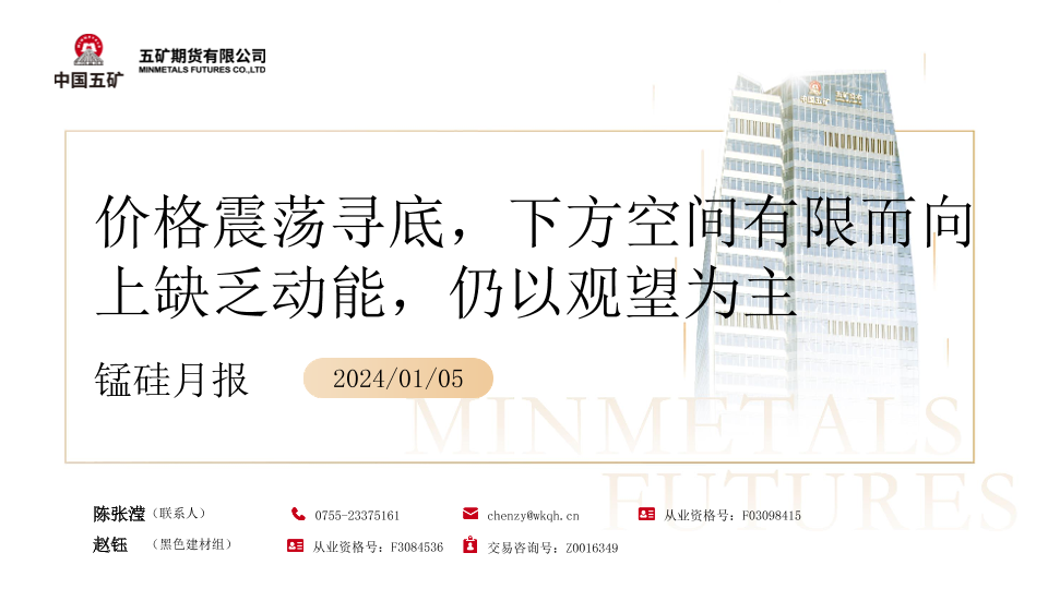 【五矿期货】【20240106】锰硅月报:价格震荡寻底,下方空间有限而向上缺乏动能,仍以观望为主-56页