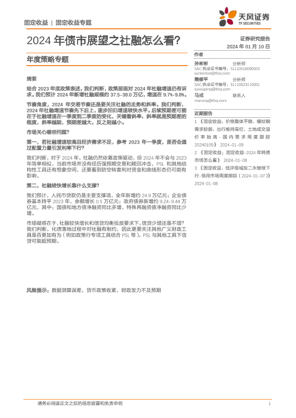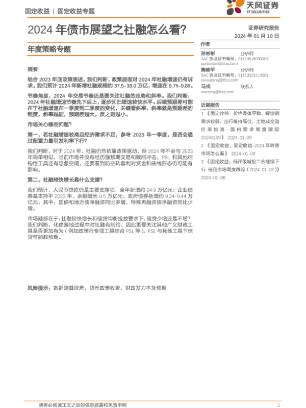 【天风证券】【20240110】2024年债市展望之社融怎么看?-17页