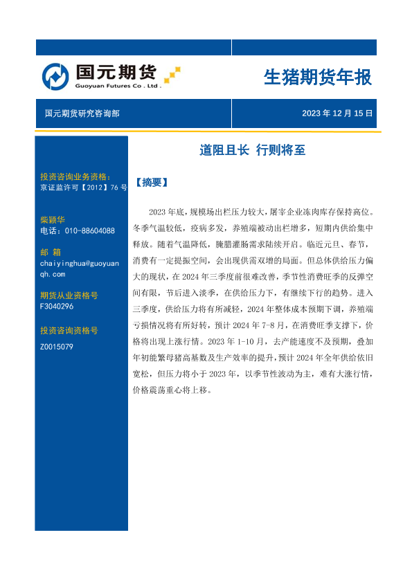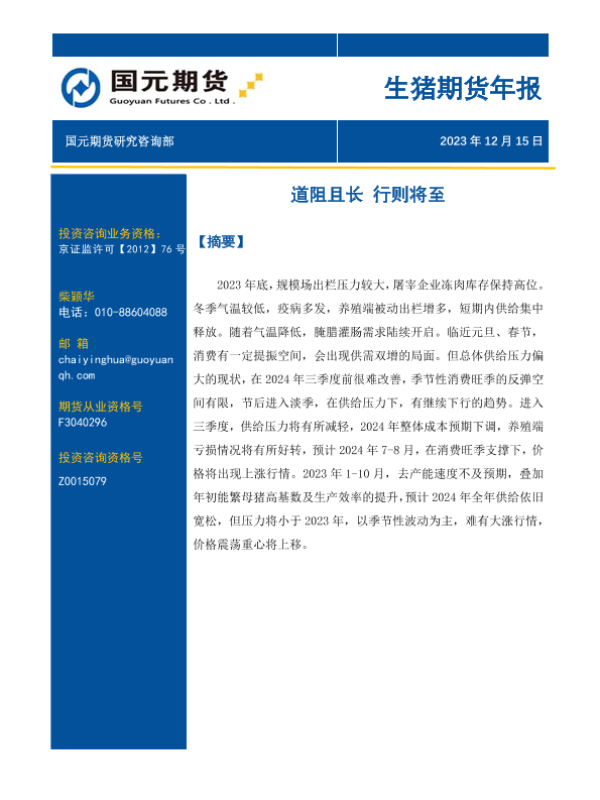 【国元期货】【20231215】生猪期货年报:道阻且长 行则将至-20页