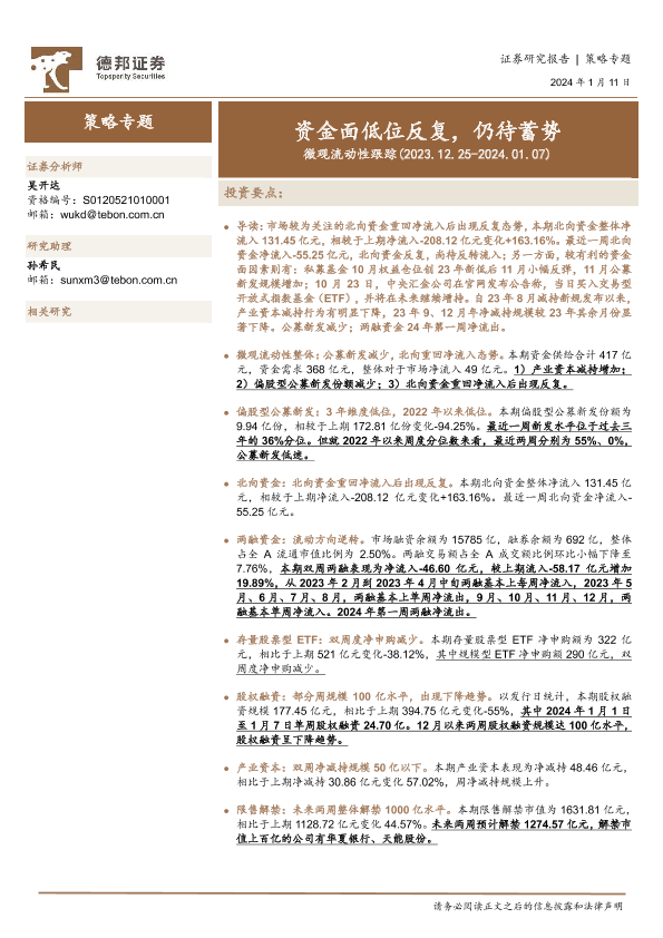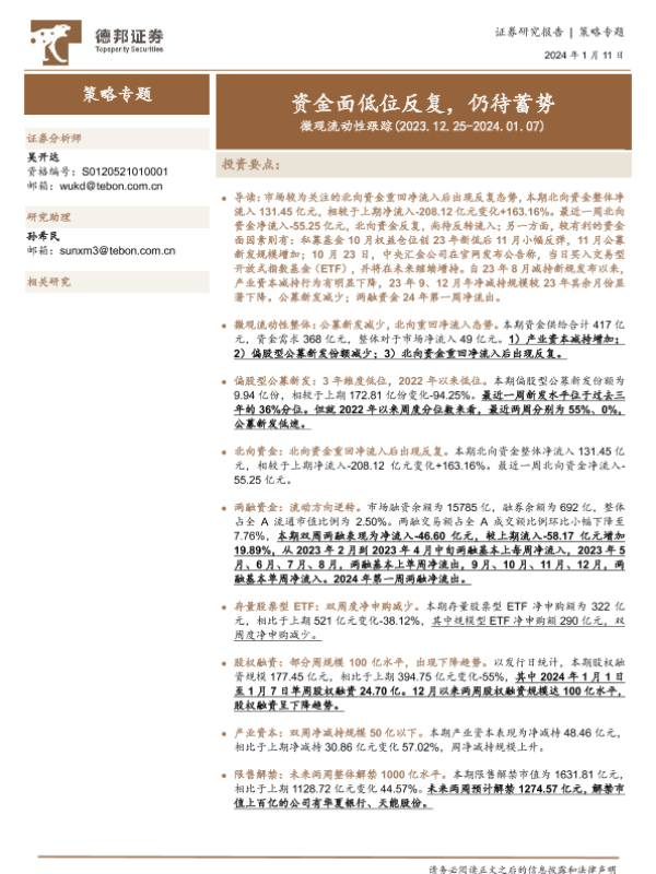 【德邦证券】【20240111】微观流动性跟踪:资金面低位反复,仍待蓄势-16页