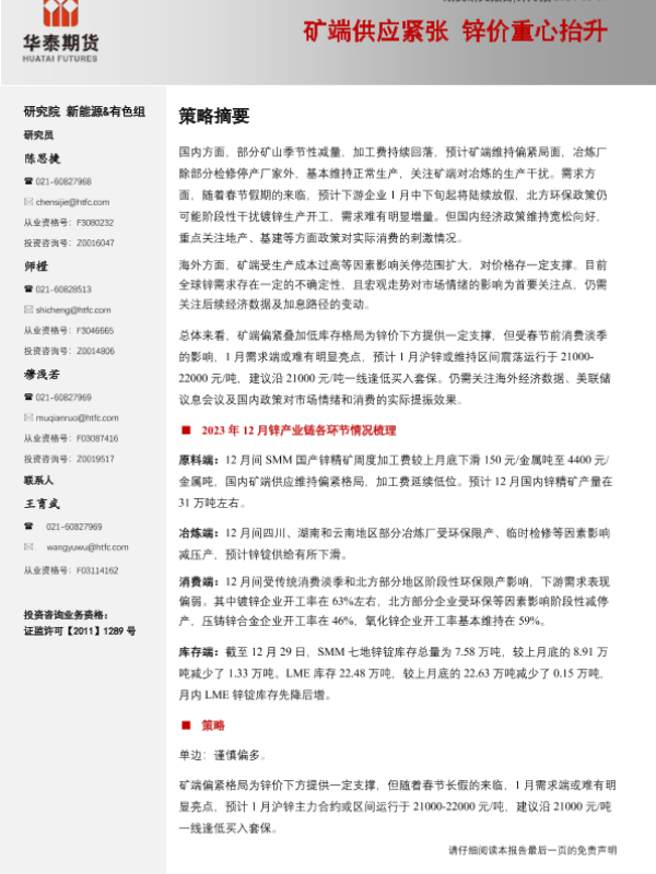 【华泰期货】【20240107】锌月报:矿端供应紧张 锌价重心抬升-20页