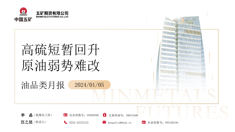【五矿期货】【20240105】油品类月报:高硫短暂回升 原油弱势难改-36页