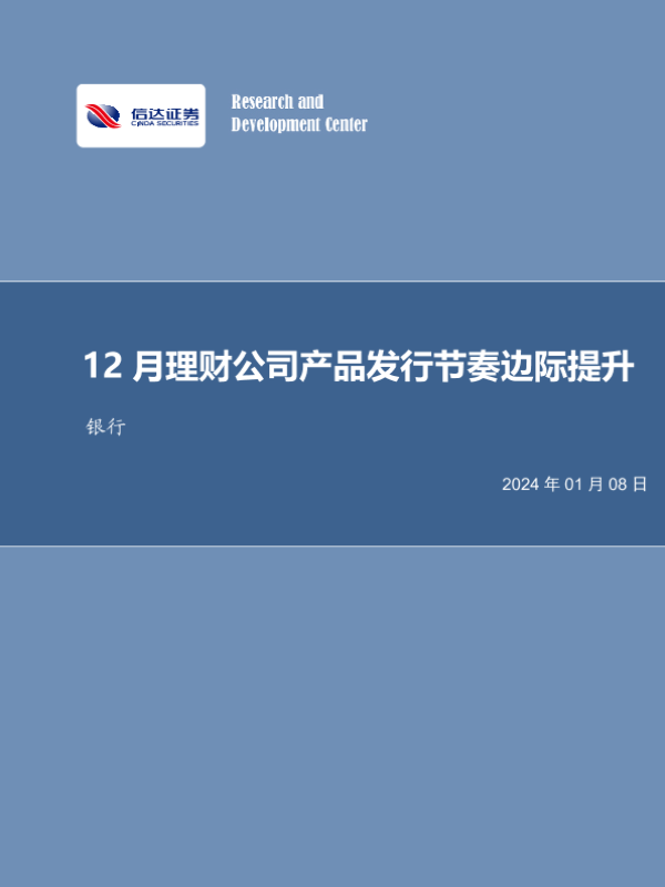 【信达证券】【20240108】12月理财公司产品发行节奏边际提升-26页