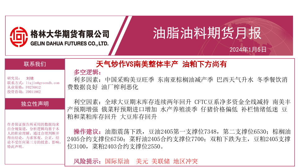 【格林大华期货】【20240105】油脂油料期货月报:天气炒作VS南美整体丰产 油粕下方尚有-35页