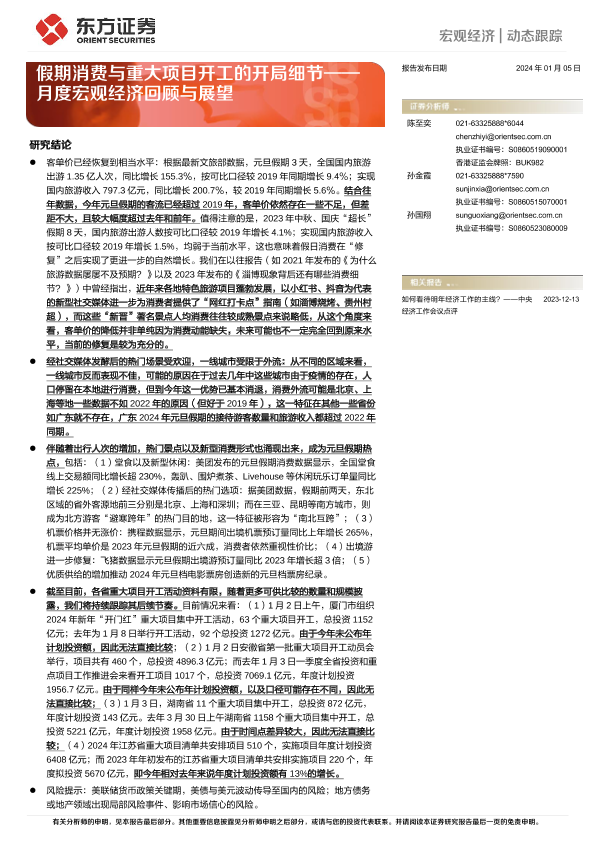 【东方证券】【20240105】月度宏观经济回顾与展望:假期消费与重大项目开工的开局细节-10页