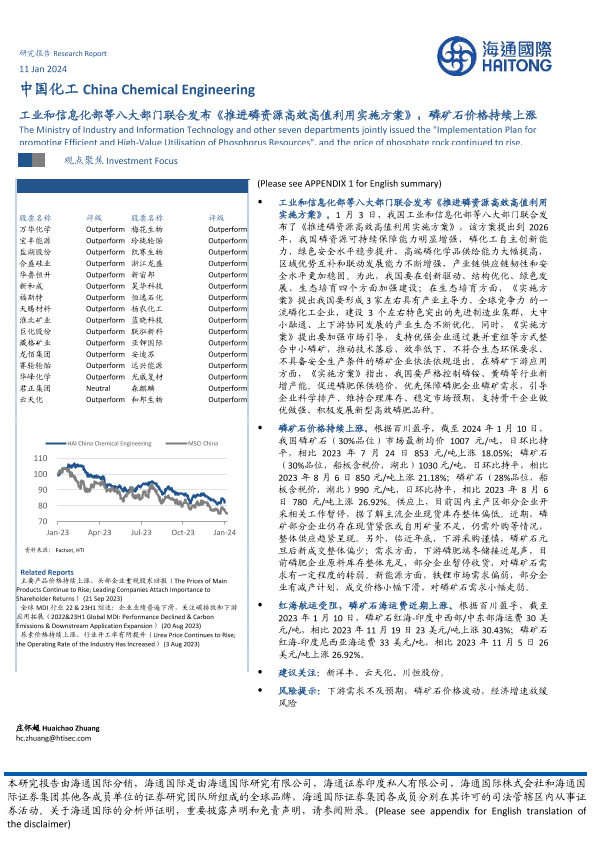 【海通国际】【20240111】中国化工:工业和信息化部等八大部门联合发布《推进磷资源高效高值利用实施方案》,磷矿石价格持续上涨-10页
