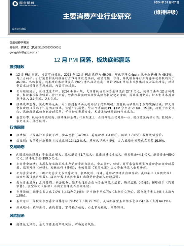 【国金证券】【20240107】主要消费产业行业研究:12月PMI回落,板块底部震荡-19页