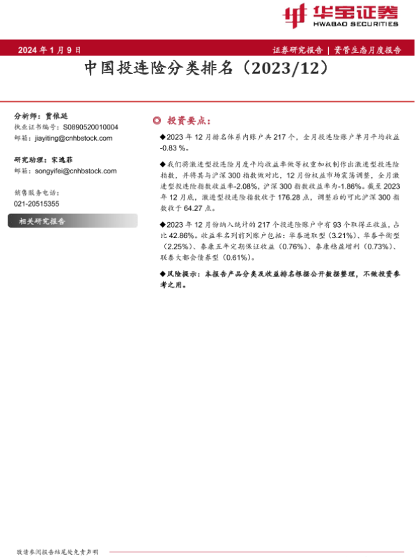 【华宝证券】【20240109】资管生态月度报告:中国投连险分类排名(2023 12)-19页