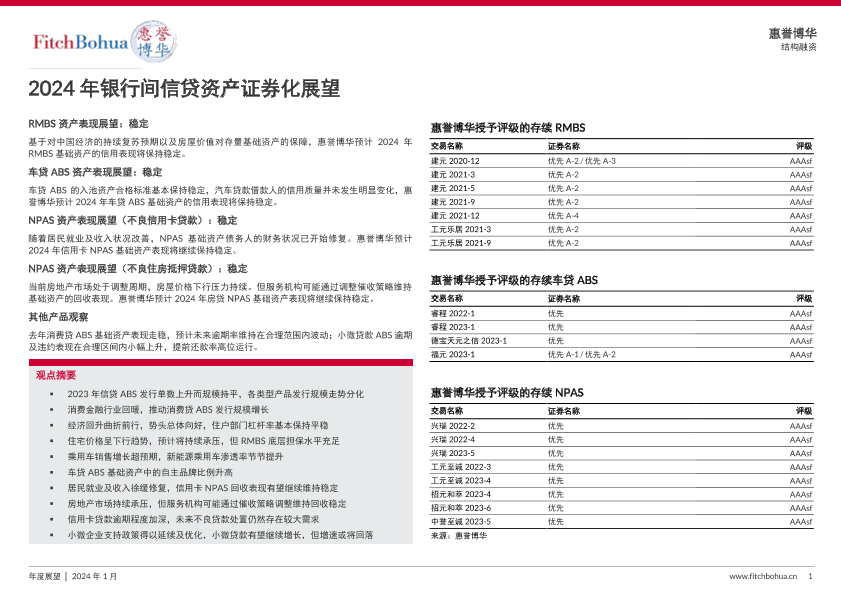 【惠誉博华】【202401】2024年银行间信贷资产证券化展望-10页