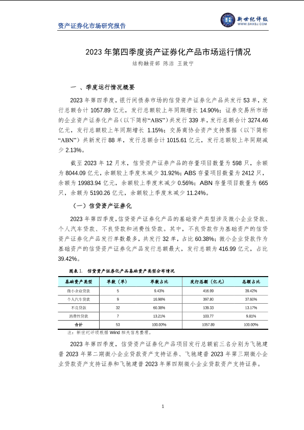 【结构融资部陈洁王致宁】【20231231】2023年第四季度资产证券化产品市场运行情况-9页
