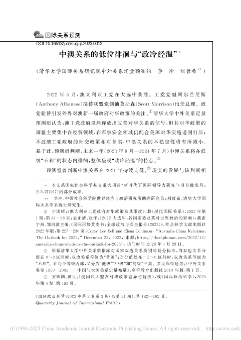 【清华大学国际关系研究院中外关系定量预测组】【202308】中澳关系的低位徘徊与“政冷经温”-11页