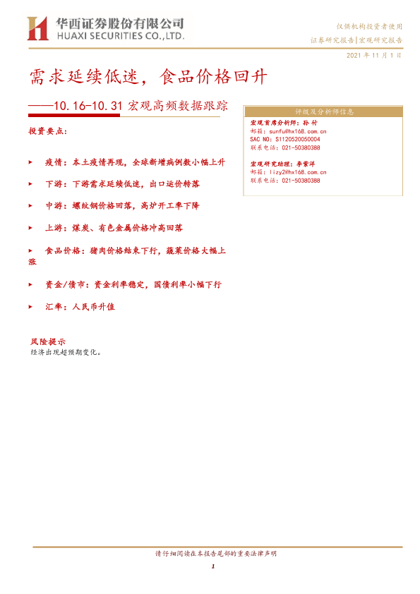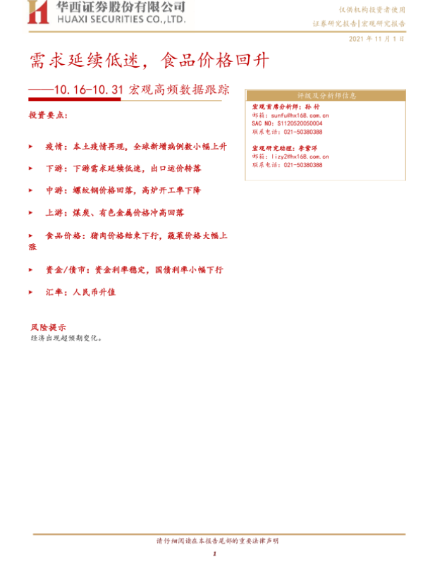 【华西证券】【20211101】宏观高频数据跟踪:需求延续低迷,食品价格回升-15页