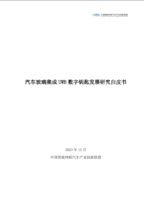 【中国智能网联汽车产业创新联盟】【202312】汽车玻璃集成UWB数字钥匙发展研究白皮书-42页