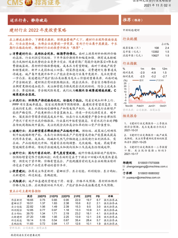 【海通证券】【20211102】建材行业2022年度投资策略:逆水行舟,静待破局-41页