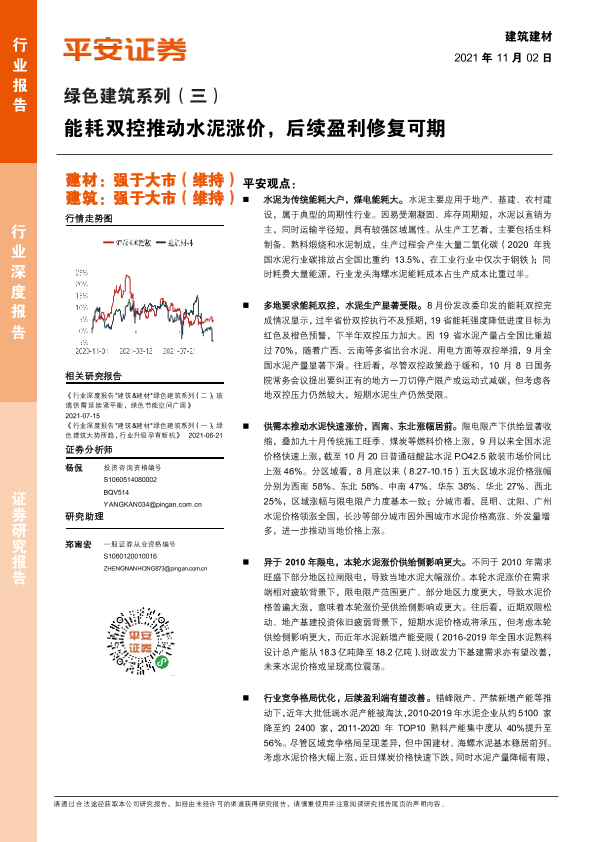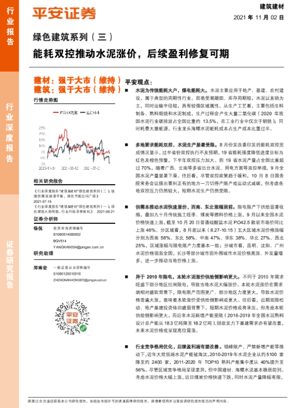 【平安证券】【20211102】建筑建材行业绿色建筑系列(三):能耗双控推动水泥涨价,后续盈利修复可期-19页