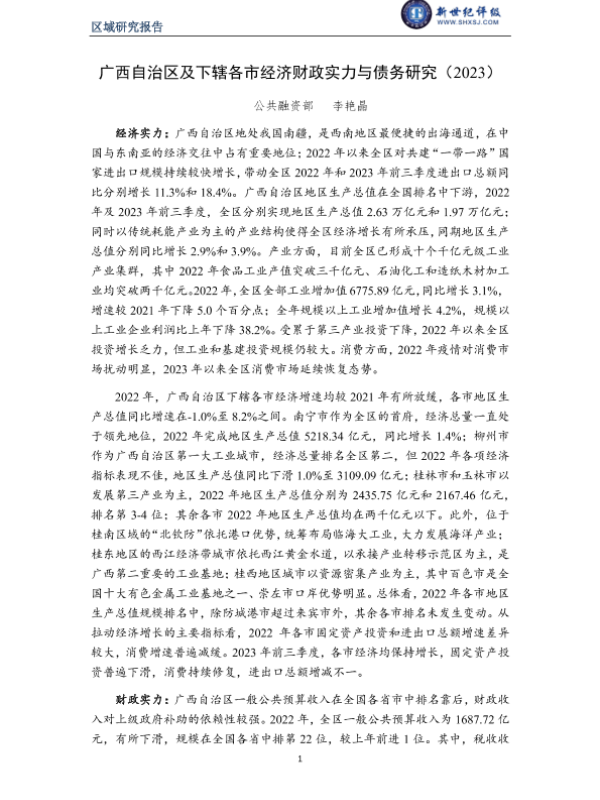 【公共融资部】【20230101】广西自治区及下辖各市经济财政实力与债务研究(2023)-30页