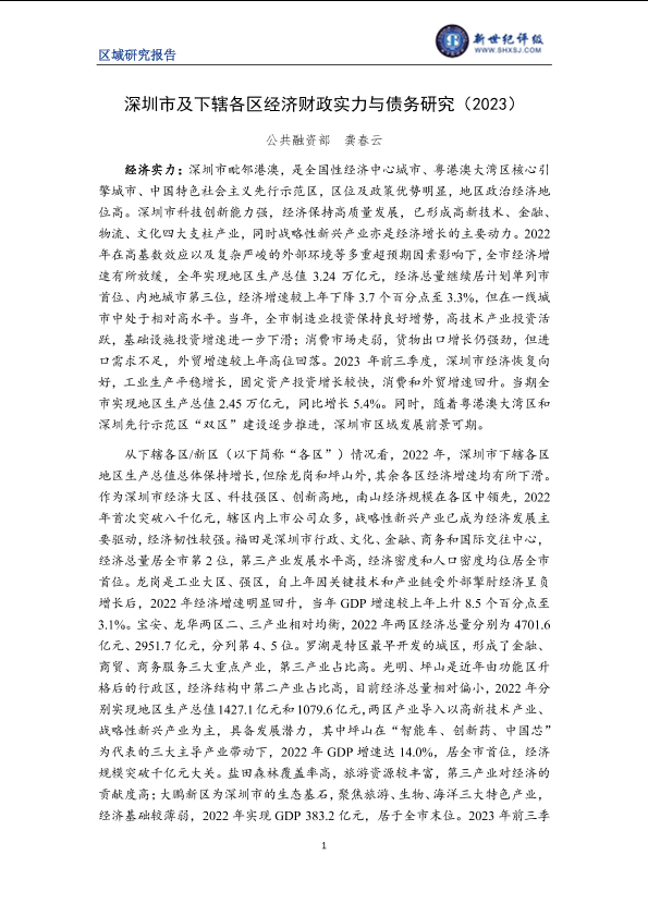【公共融资部】【20230101】深圳市及下辖各区经济财政实力与债务研究(2023)-20页