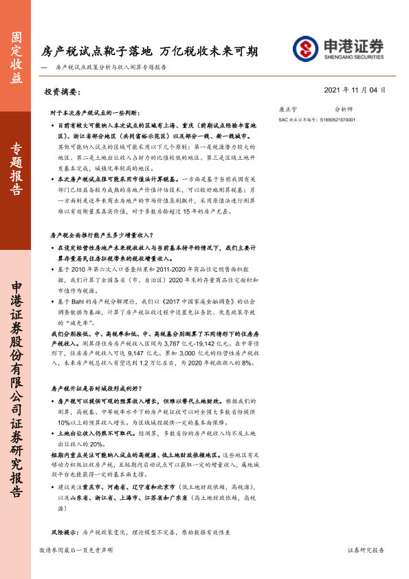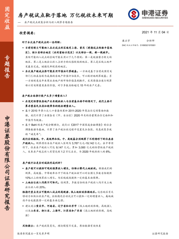 【申港证券】【20211104】房产税试点政策分析与收入测算专题报告:房产税试点靴子落地,万亿税收未来可期-17页