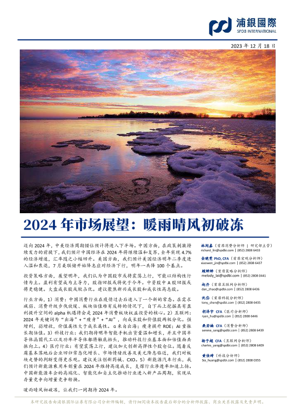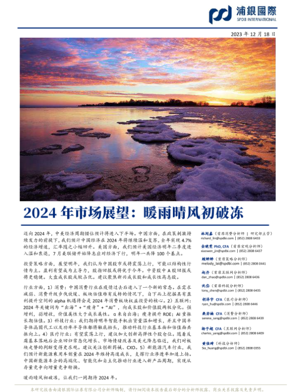 【浦银国际】【20231218】2024年市场展望:暖雨晴风初破冻-341页