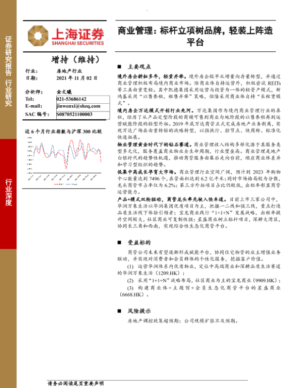 【上海证券】【20211102】房地产行业商业管理:标杆立项树品牌,轻装上阵造平台-33页