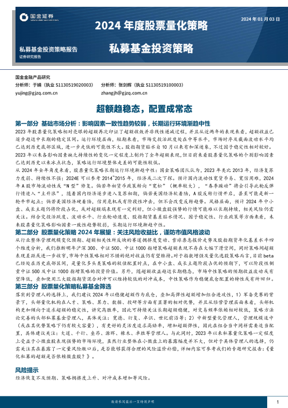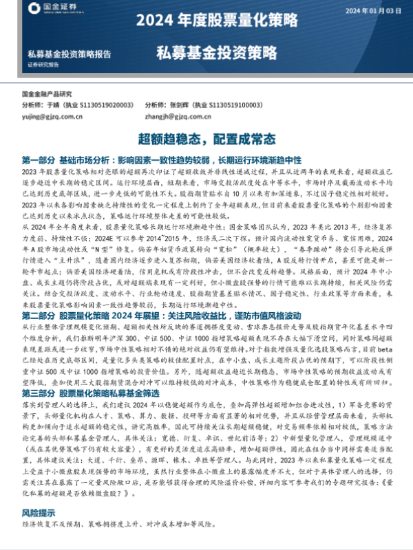 【国金证券】【20240103】2024年度股票量化策略私募基金投资策略:超额趋稳态,配置成常态-21页