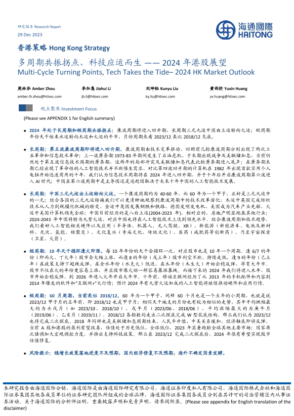 【海通国际】【20231229】多周期共振拐点,科技应运而生 —— 2024年港股展望-63页