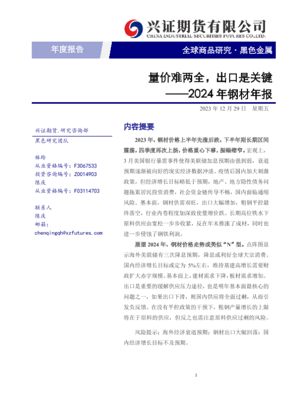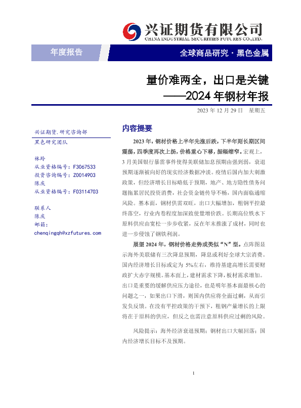 【兴证期货】【20231229】2024年钢材年报:量价难两全,出口是关键-21页