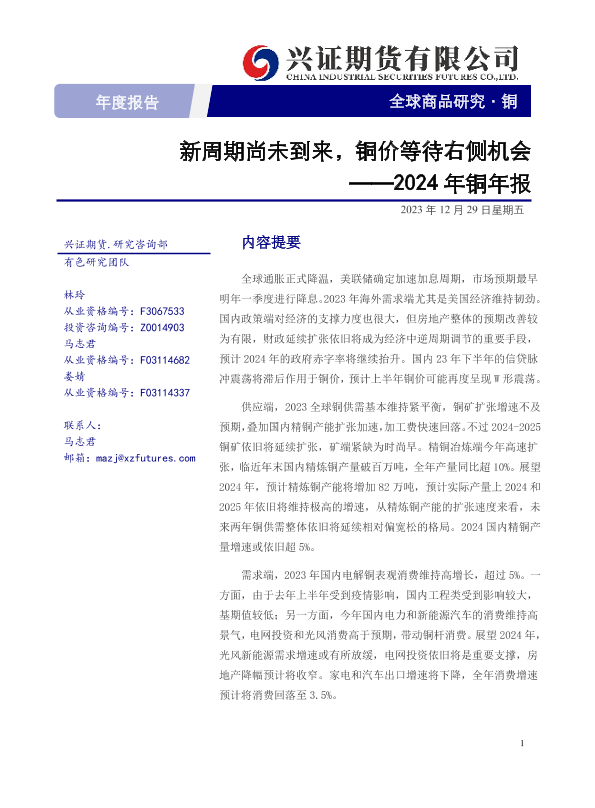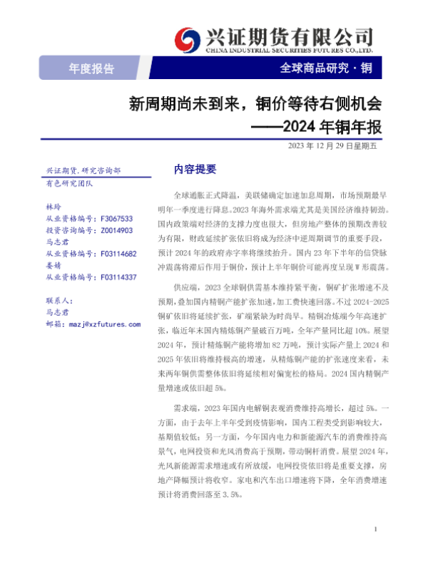 【兴证期货】【20231229】2024年铜年报:新周期尚未到来,铜价等待右侧机会-37页