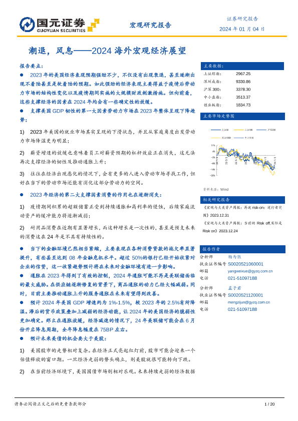 【国元证券】【20240104】2024海外宏观经济展望:潮退,风息-20页