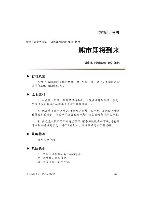 【中财期货】【20231229】2024白糖投资策略年报:熊市即将到来-11页