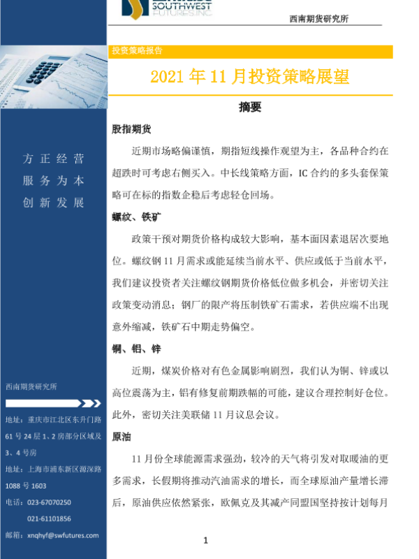 【西南期货】【20211103】2021年10月期货投资策略展望-103页