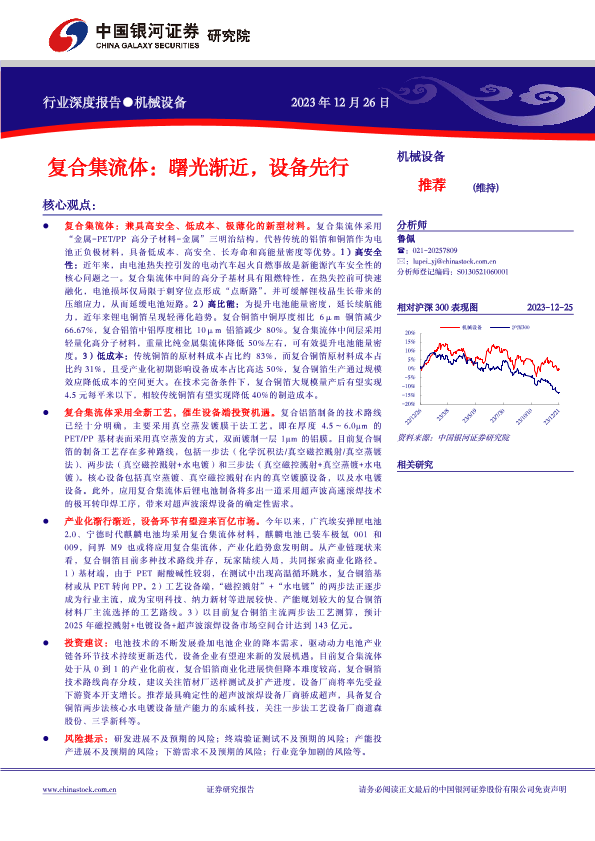 【银河证券】【20231226】中国银河:机械设备行业深度报告-复合集流体-曙光渐近-设备先行-26页