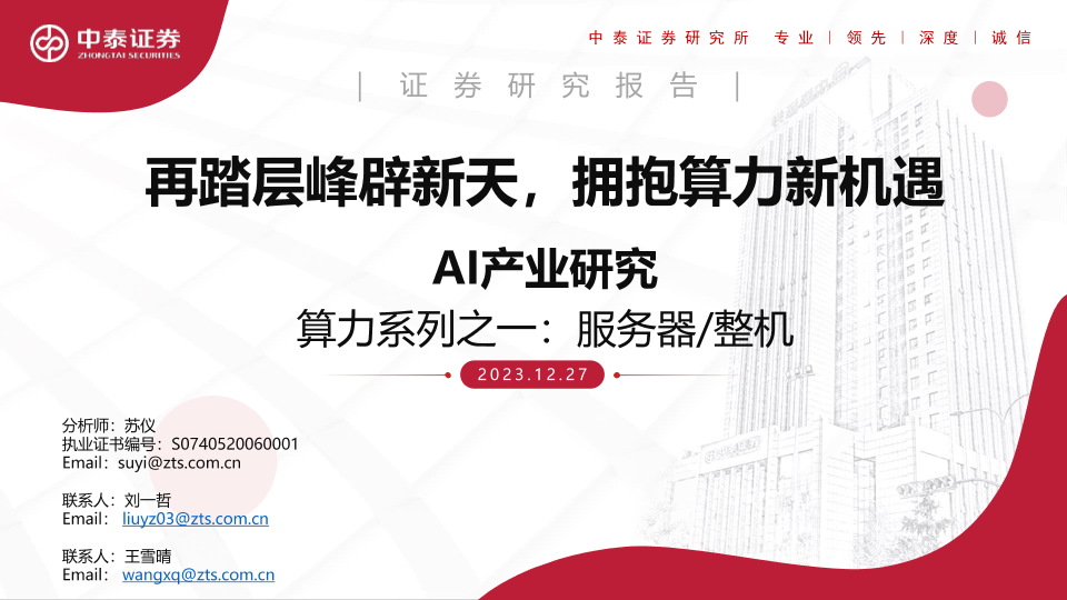 【中泰证券】【20231227】AI产业研究算力系列之一-服务器整机-再踏层峰辟新天-拥抱算力新机遇-36页