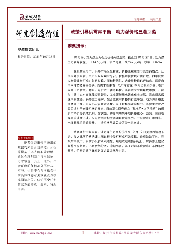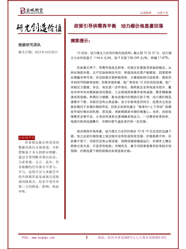 【宝城期货】【20211028】政策引导供需再平衡,动力煤价格显著回落-22页