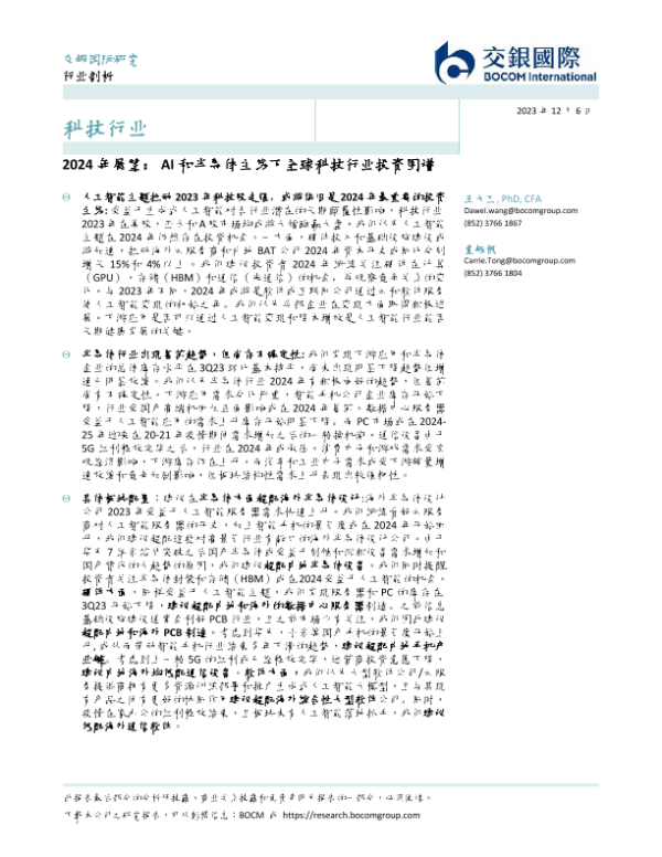【交银国际】【20231206】2024 年展望: AI 和半导体主线下全球科技行业投资图谱-38页