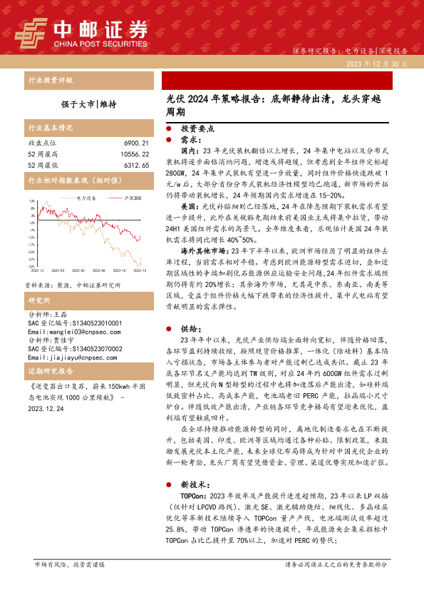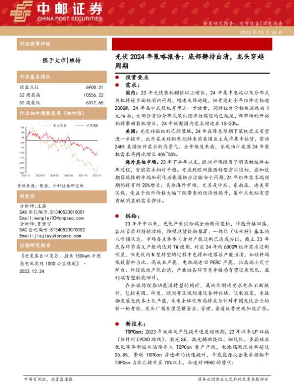【中邮证券】【20231230】光伏2024年策略报告:底部静待出清,龙头穿越周期-32页