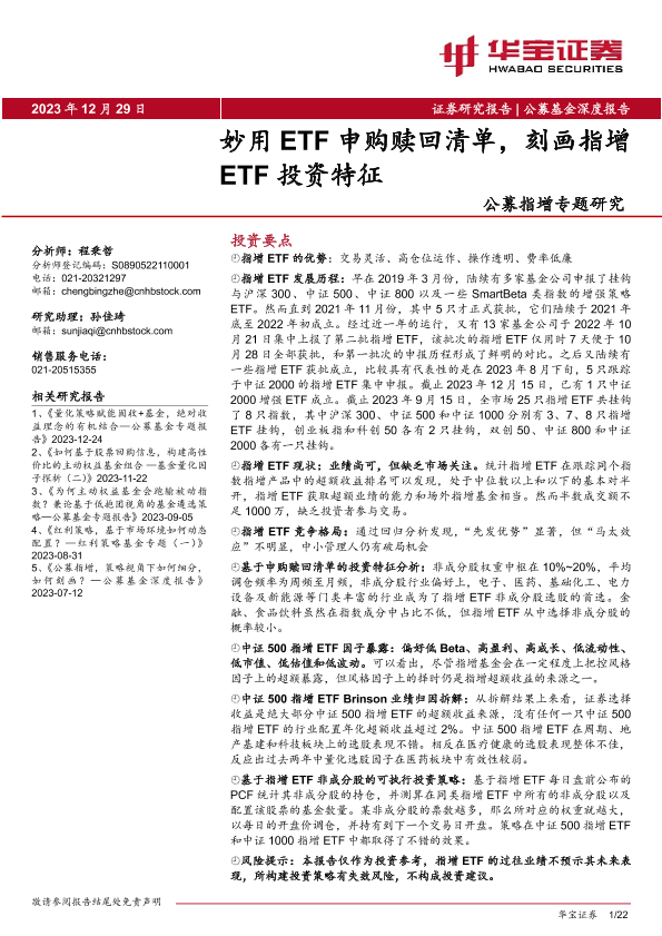 【华宝证券】【20231229】公募指增专题研究:妙用ETF申购赎回清单,刻画指增ETF投资特征-22页