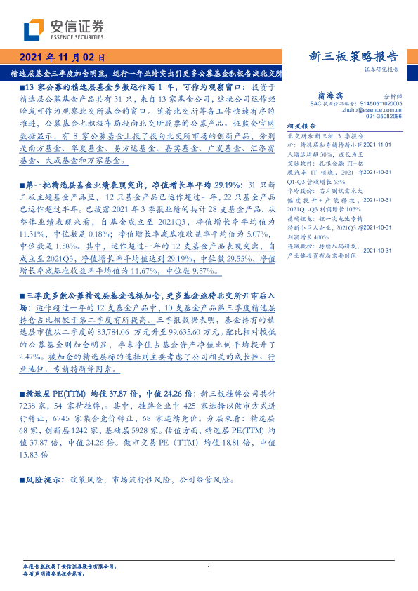 【安信证券】【20211102】新三板策略报告:精选层基金三季度加仓明显,运行一年业绩突出引更多公募基金积极备战北交所-21页