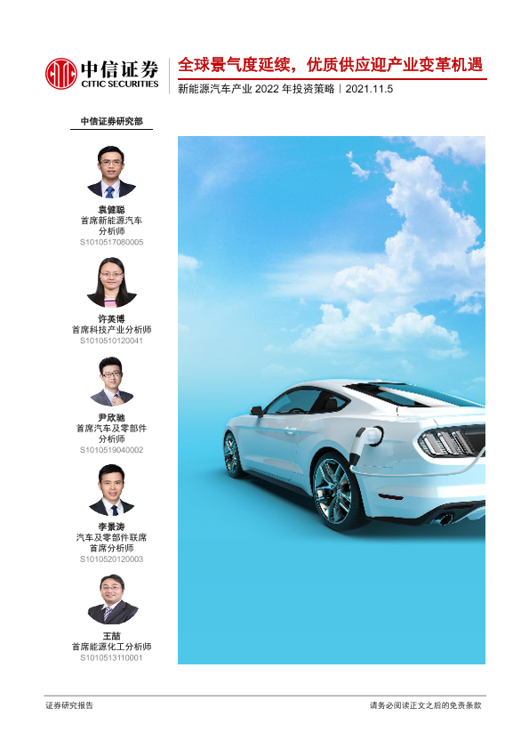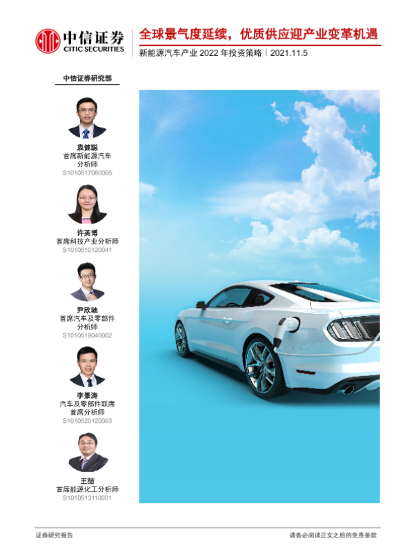 【中信证券】【20211105】新能源汽车行业产业2022年投资策略:全球景气度延续,优质供应迎产业变革机遇-63页